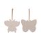 The ceramic plaques showcase a gloss finish, complete with respective insect designs: one bee and one butterfly. They are designed to be displayed using the attached suede hangers.