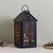 The medium, house-shaped, black metal lantern showcases a decorative die-cut stag forest scene, complete with matt finish and matching handle. Its gold internal colouring creates an ambient mood at home when candles are lit up inside.
