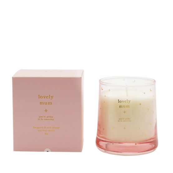 A softly scented candle designed to celebrate a special mum, featuring the heartfelt message “Lovely Mum, you’re going to be amazing.” Delicate star detailing and gentle neutral tones create a calm, comforting feel suited to any home.