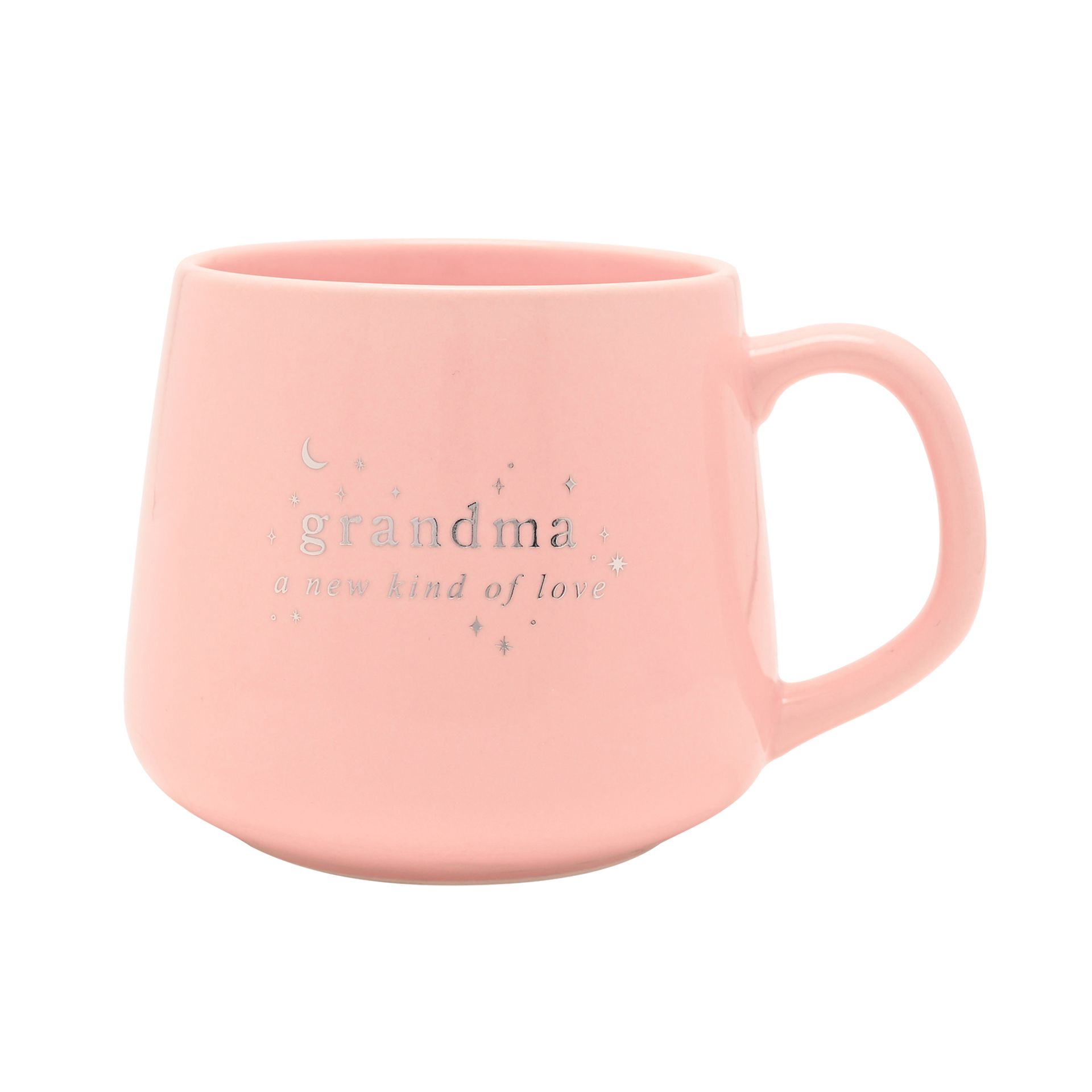 A heartfelt mug designed to celebrate a special grandma, featuring the touching message “Grandma - a new kind of love.” Finished in a soft pink tone with delicate star detailing, it brings a warm and sentimental touch to everyday moments.