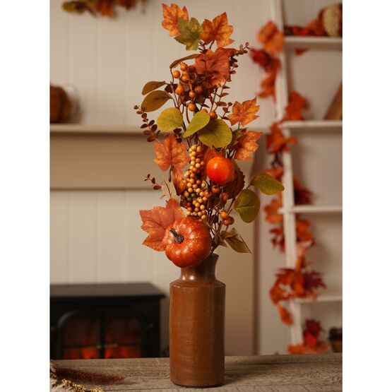 Featuring vibrant autumn-coloured leaves, berries, and a charming pumpkin accent, it creates a warm, festive display that captures the essence of the season. Its generous 80cm length is perfect for eye-catching arrangements in vases, wreaths, or larger displays.