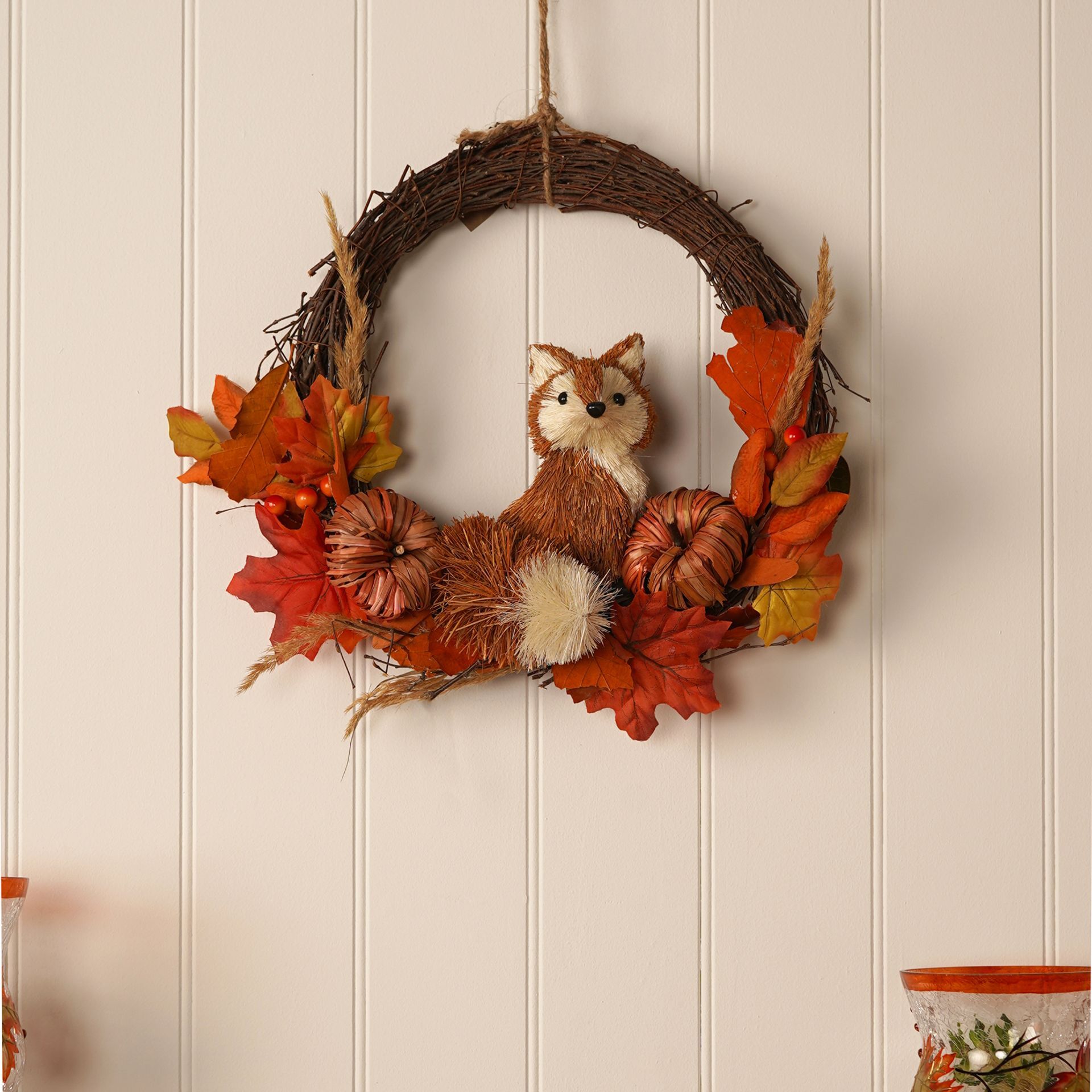Country Living Rattan Fox Wreath - 39cm