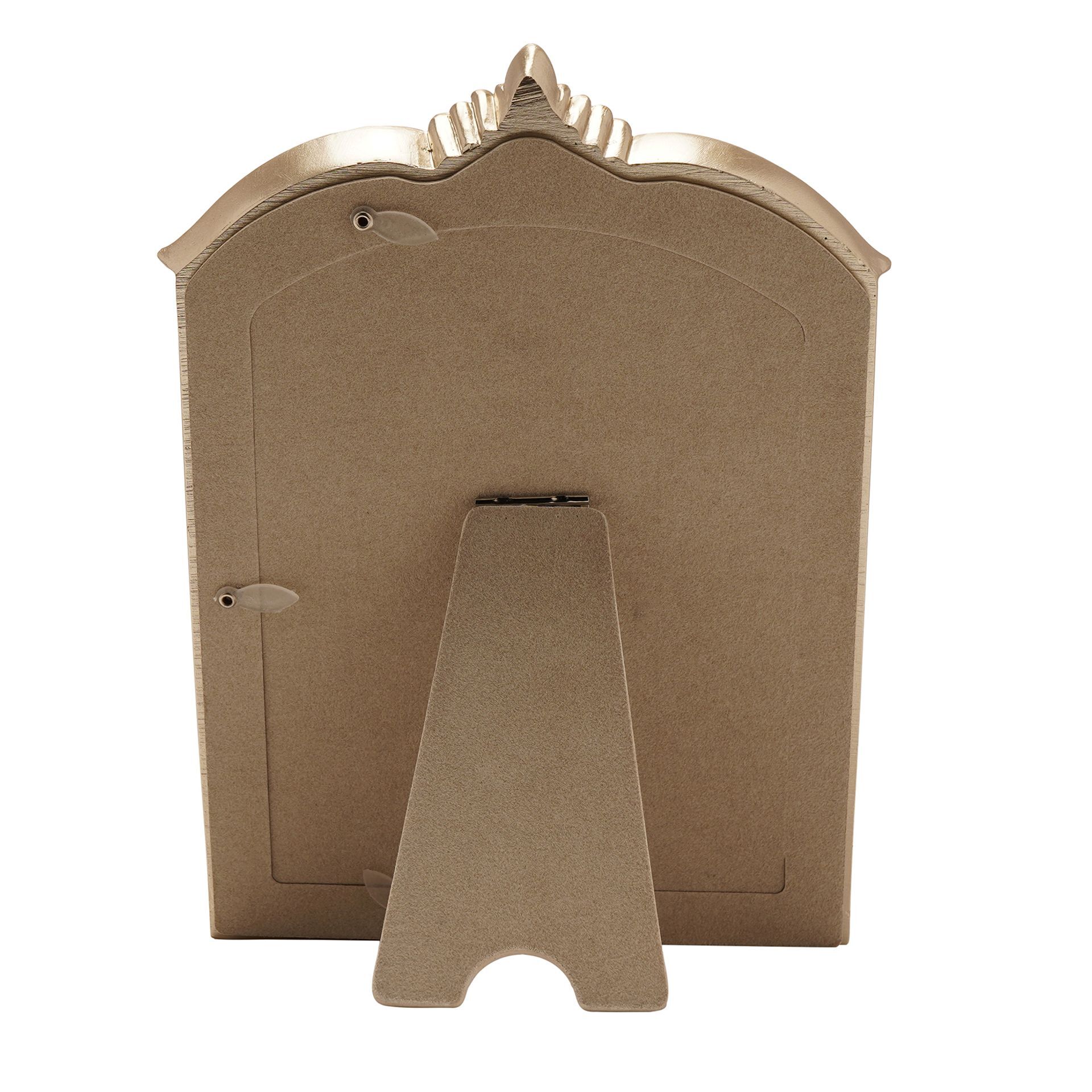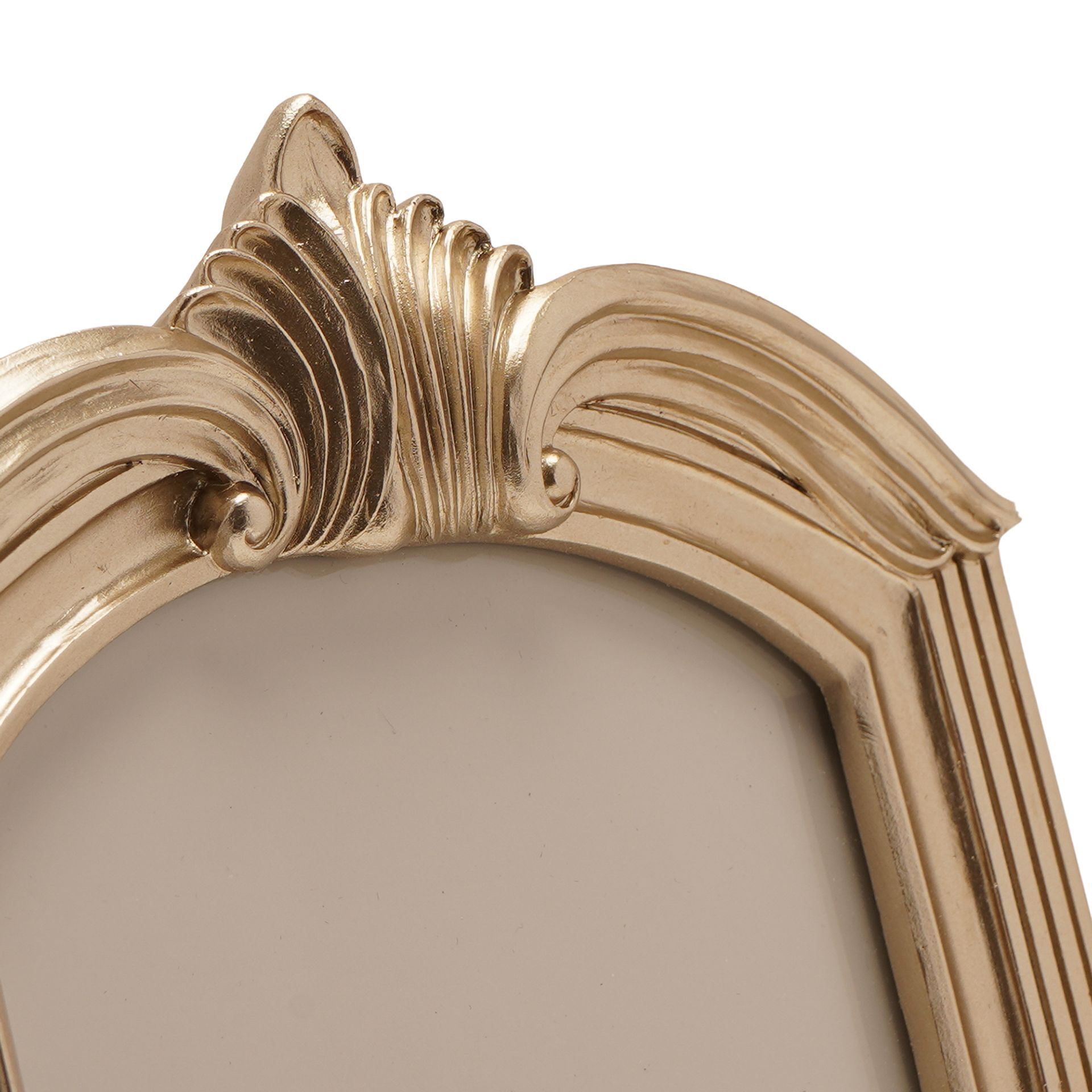 Designed to hold a standard 4" x 6" image, the layered detailing and sculpted top create depth and visual impact, making it a standout piece for shelves, mantelpieces or bedside tables. The warm metallic tone complements both traditional and contemporary décor.