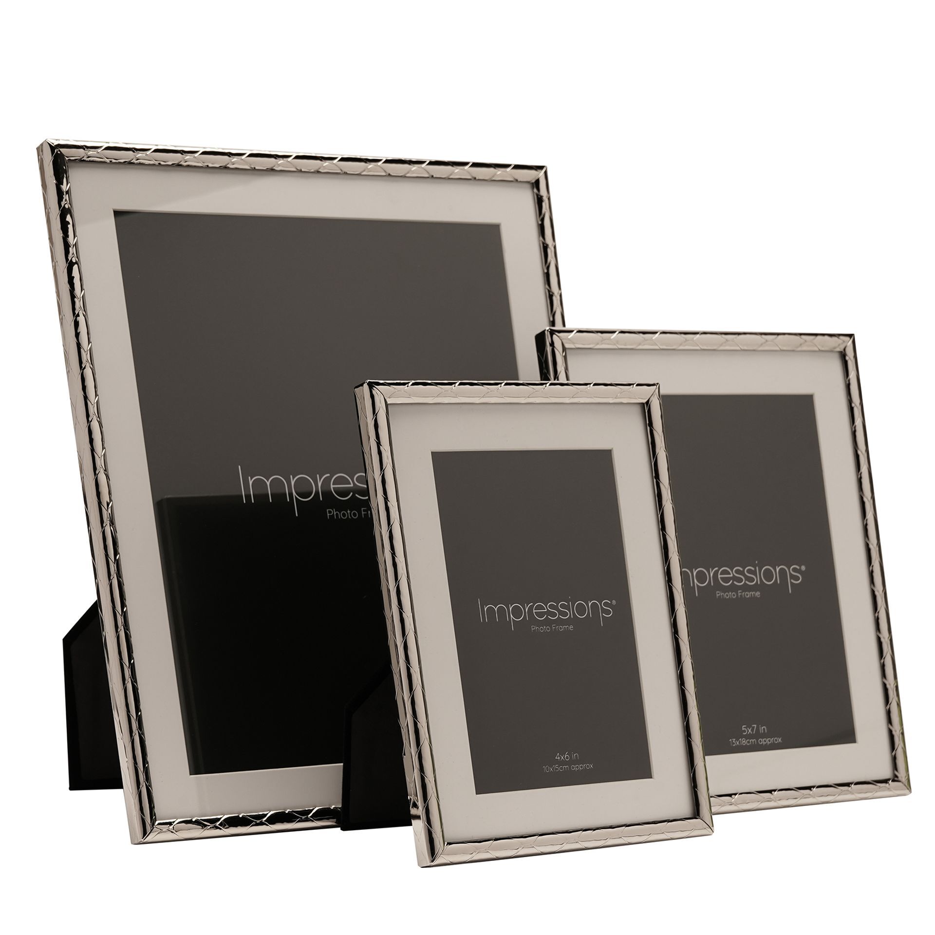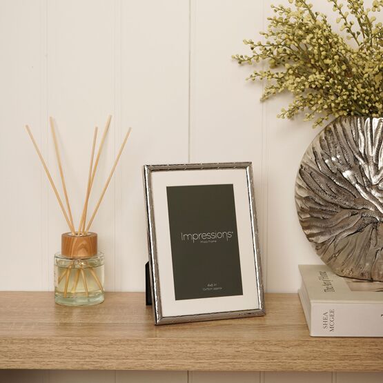 The Impressions Criss Cross Silver Photo Frame 4" x 6" offers a contemporary way to display treasured photographs. Featuring a polished silver finish with a subtle criss-cross textured border, it adds depth and detail while maintaining a clean, modern look.