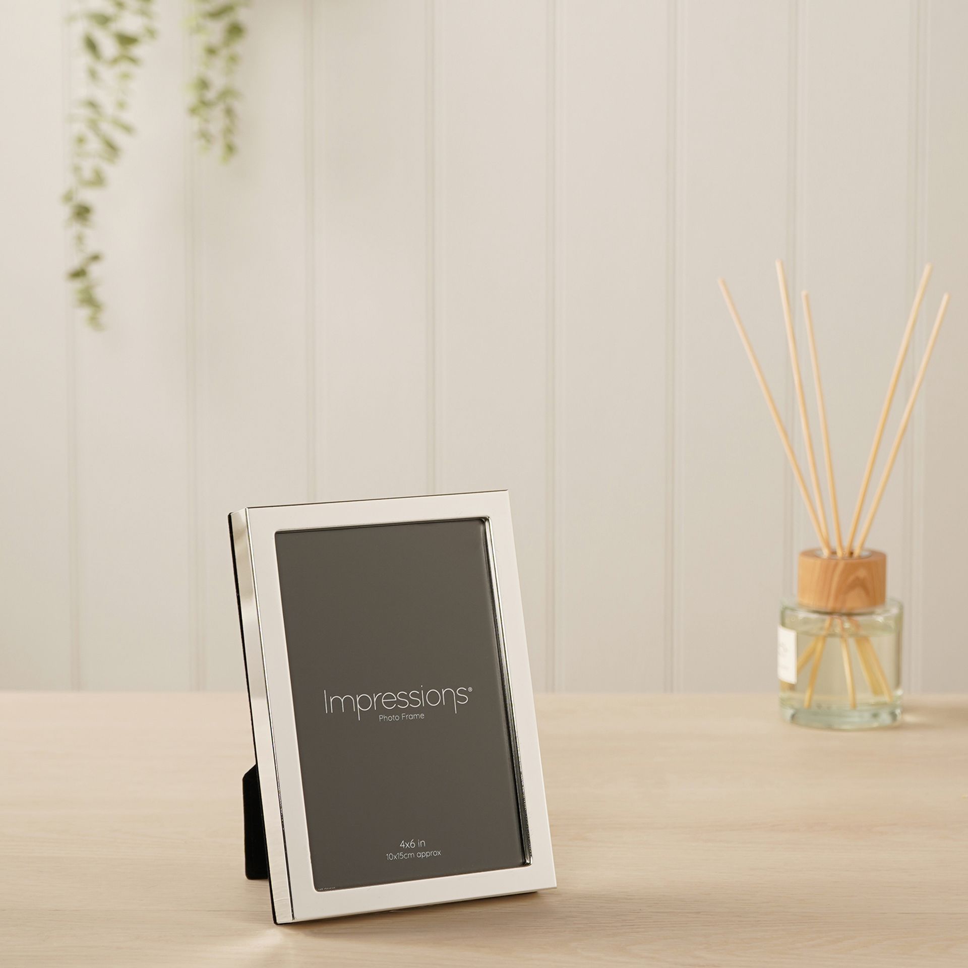 The Impressions Silver Plated Narrow Photo Frame 4" x 6" offers a sleek and understated way to display cherished photographs. Featuring a slim, silver-plated border, its minimalist design brings a clean and contemporary look to any setting.