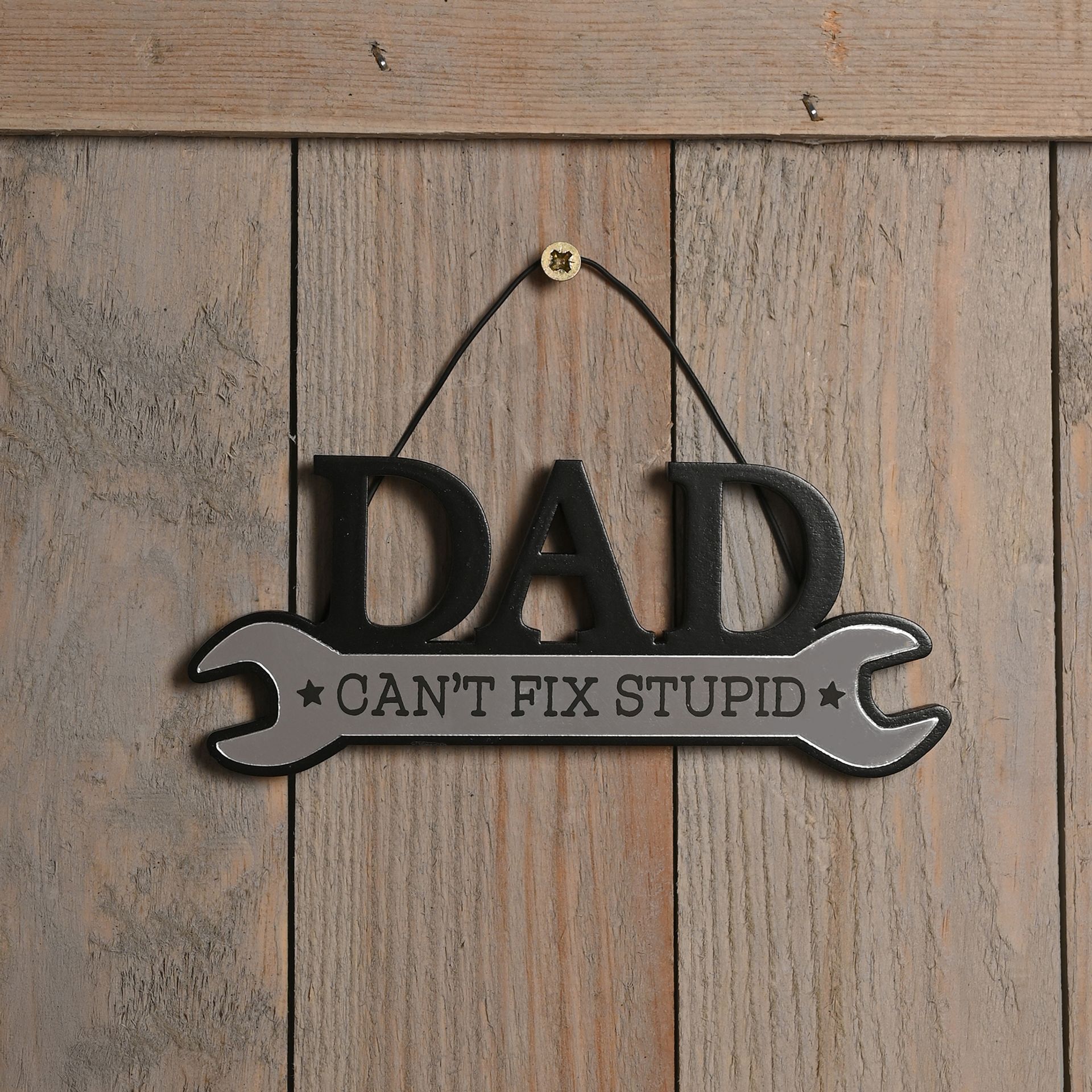 The **MULTI 6** Well Crafted White and Black Plaque - Dad Can't Fix Stupid brings wit and warmth to any space with its playful caption celebrating the lighter side of family life.