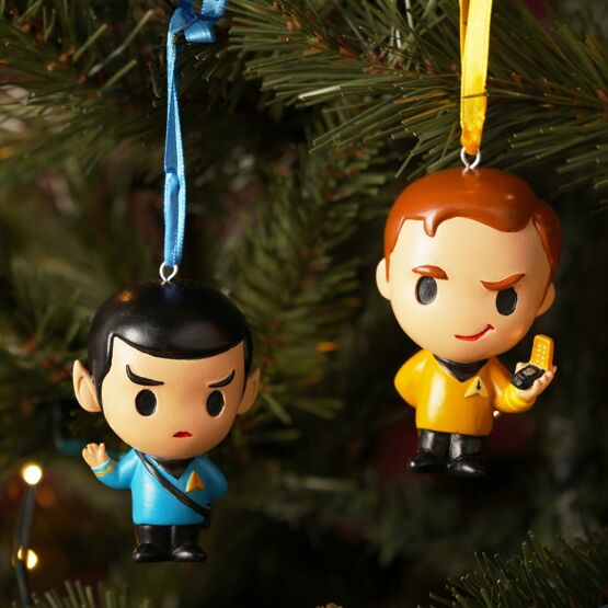 May the force be with you this Christmas! Embark on a Star Trek journey with this set of two Kirk and Spock hanging decoration figurines.
