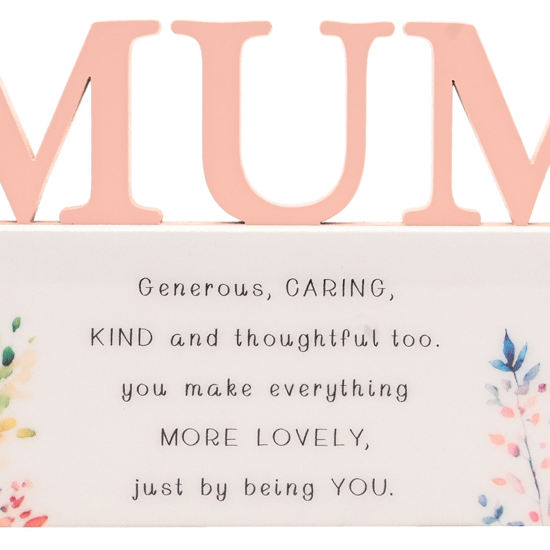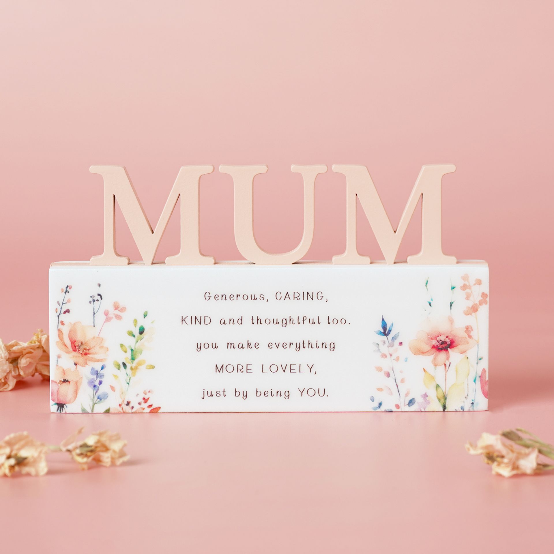 The Cottage Garden Floral Word - Mum The Cottage Garden Floral Word is a decorative block sign that pairs bold cut-out lettering with soft watercolour floral artwork and uplifting wording. Designed to sit neatly on shelves, mantels, or desks, it adds both colour and personality to the home.