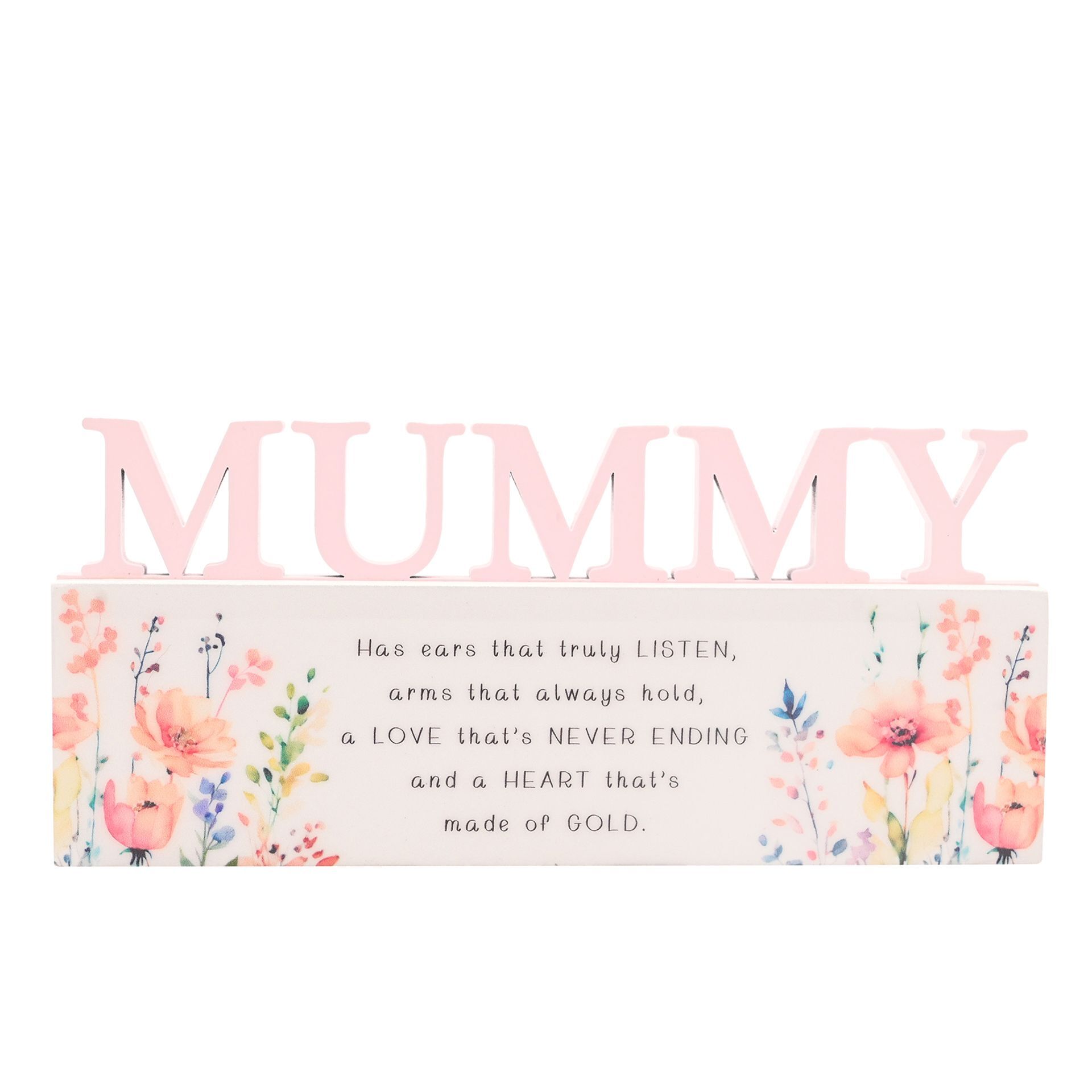 The Cottage Garden Floral Word - Mummy The Cottage Garden Floral Word is a decorative block sign that pairs bold cut-out lettering with soft watercolour floral artwork and uplifting wording. Designed to sit neatly on shelves, mantels, or desks, it adds both colour and personality to the home.