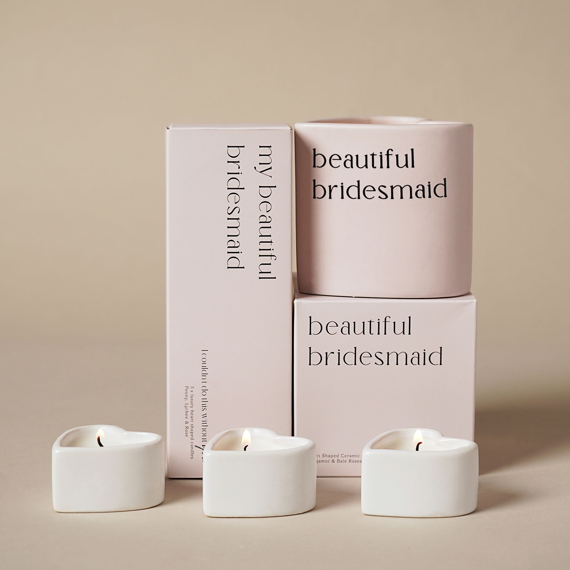 The Amore Set Of 3 Heart Candles - My Beautiful Bridesmaid is the perfect gift for celebrating special relationship milestones.