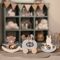 The wooden toys provide a playful exploration of shapes, textures, and colours for a little one.