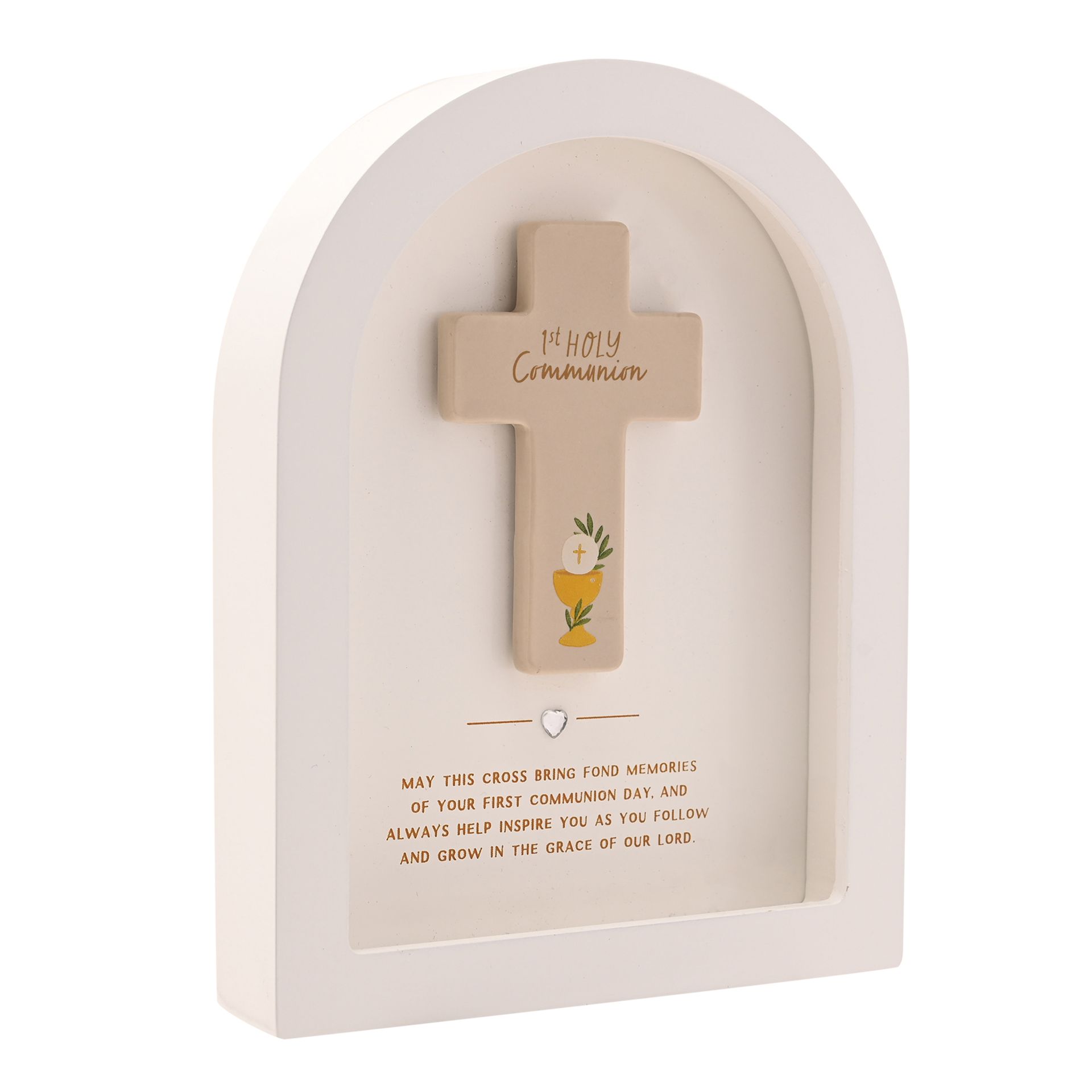The Faith & Hope Framed Plaque – 1st Communion pairs a wooden cross with elegant typography, creating a refined piece for faith-led gifting.