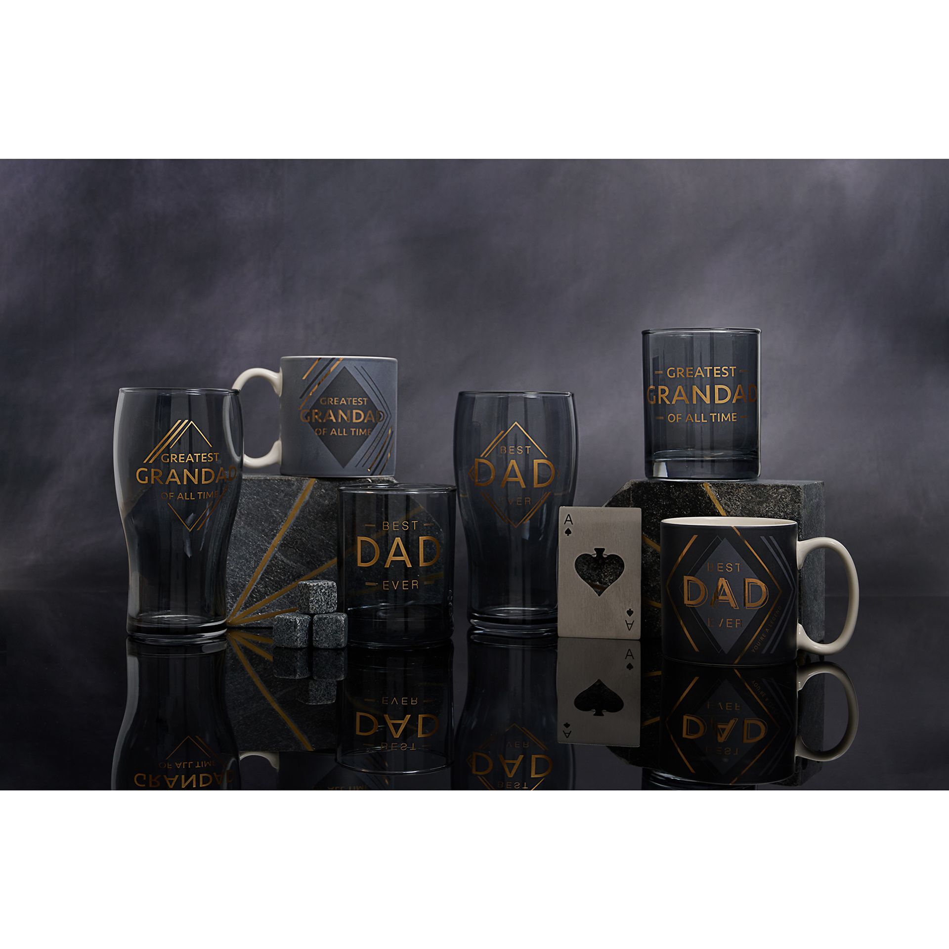 The glass features blue tinted glass, complete with ‘Best Dad Ever’ gold title. It is accompanied by four stone ice cubes, ensuring that Dad’s scotch can always be on the rocks.