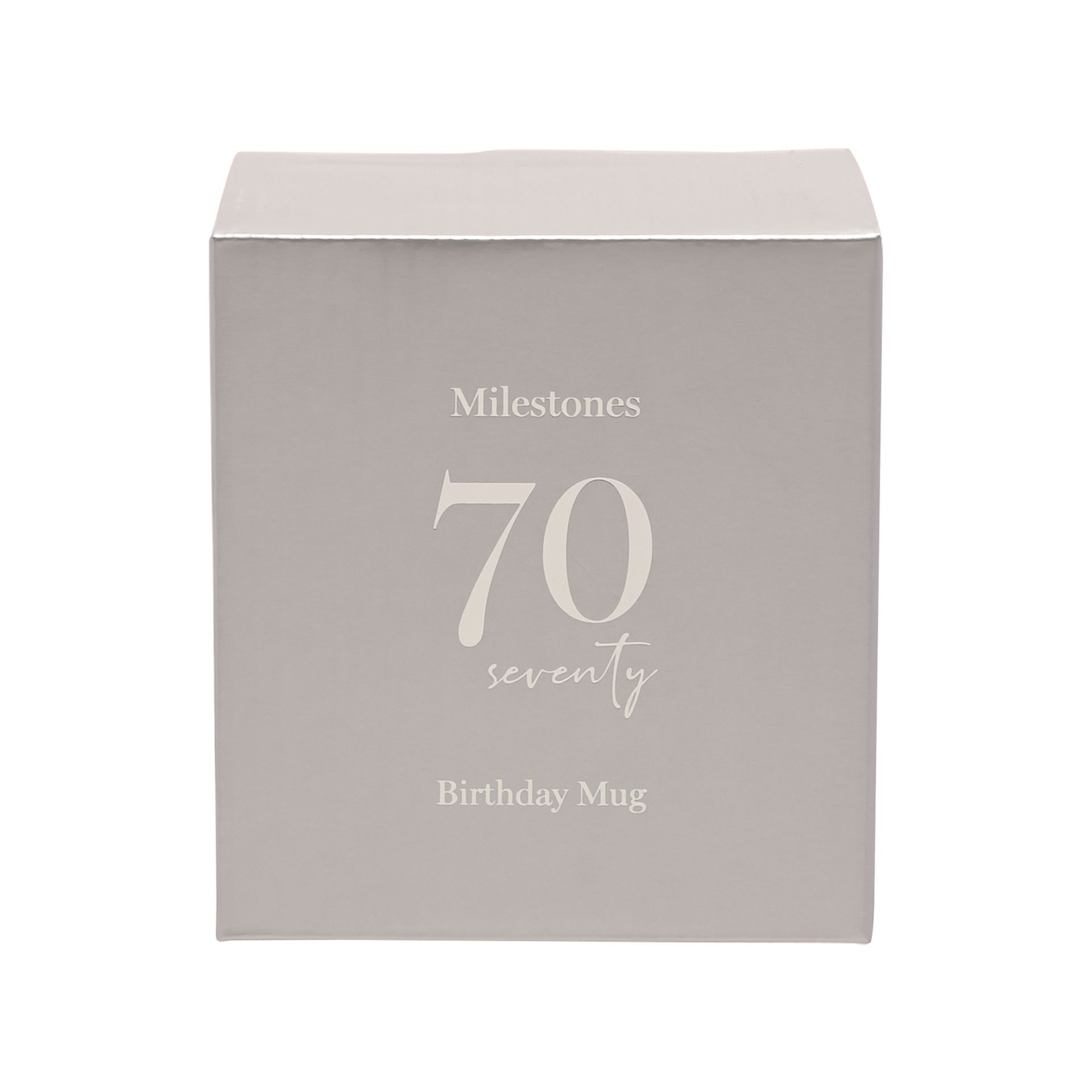 Help someone special toast 70 years in style with this crisp white porcelain mug with silver foil decal.