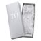 The clear flute features ‘70 Seventy’ printed silver title. It is designed for everyday use or proud display at home.