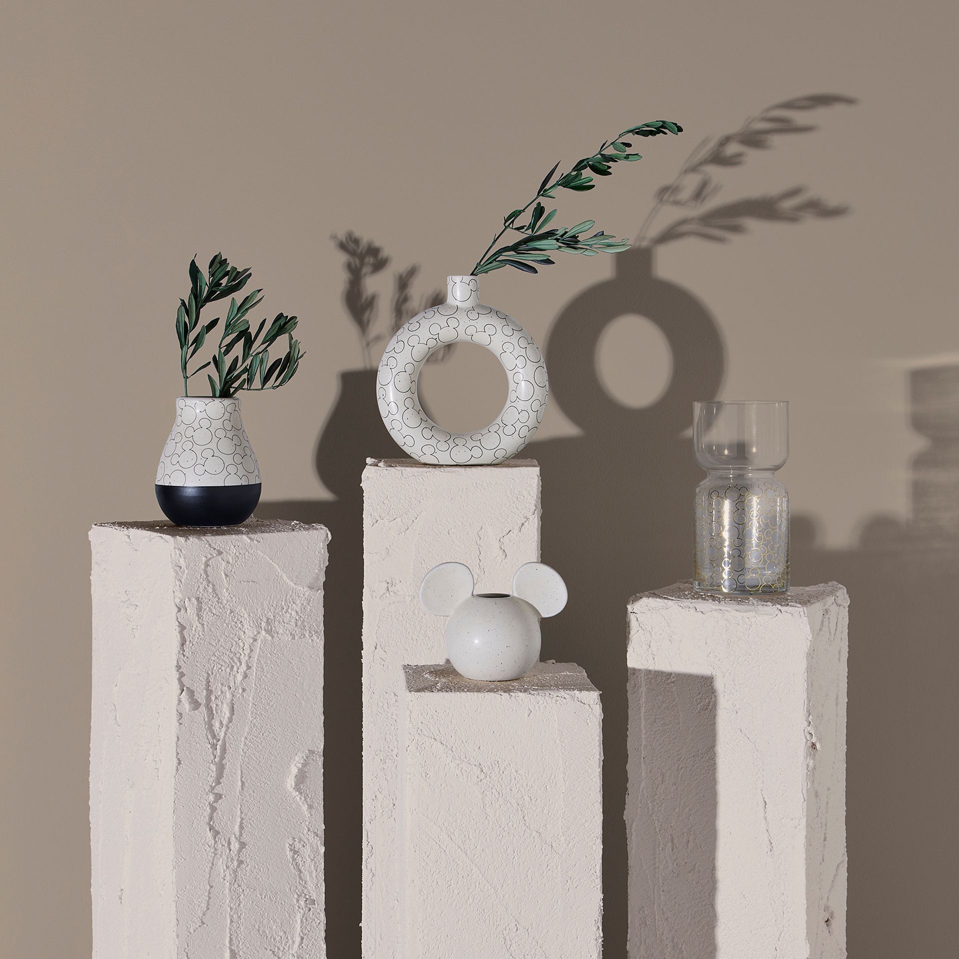 The vase showcases a distinctive Mickey Mouse shape, complete with natural colouring and speckled effect. It offers a small opening between the ears in which to display beautiful flower arrangements.