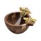 The dip bowl showcases gorgeous acacia wood, complete with gold metal bee embellishment upon the integrated handle. The accompanying metal spreader features a distinctive handle which has a matching bee design.