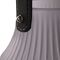 The frosted grey glass lamp showcases a textured design, complete with attached faux leather handle. Its LED light creates an ambient mood when displayed in any living space.