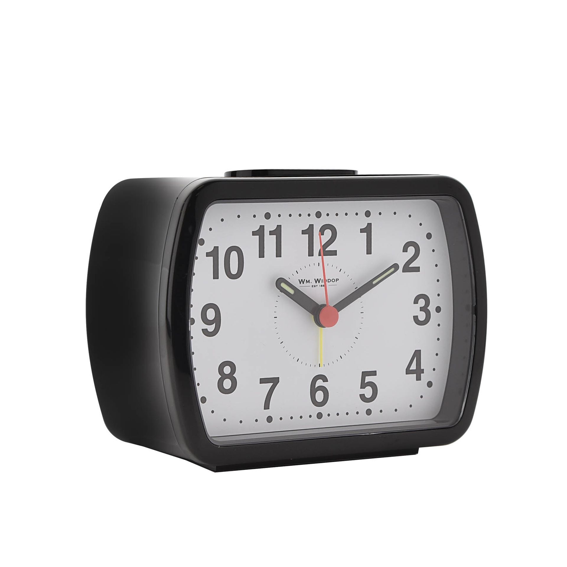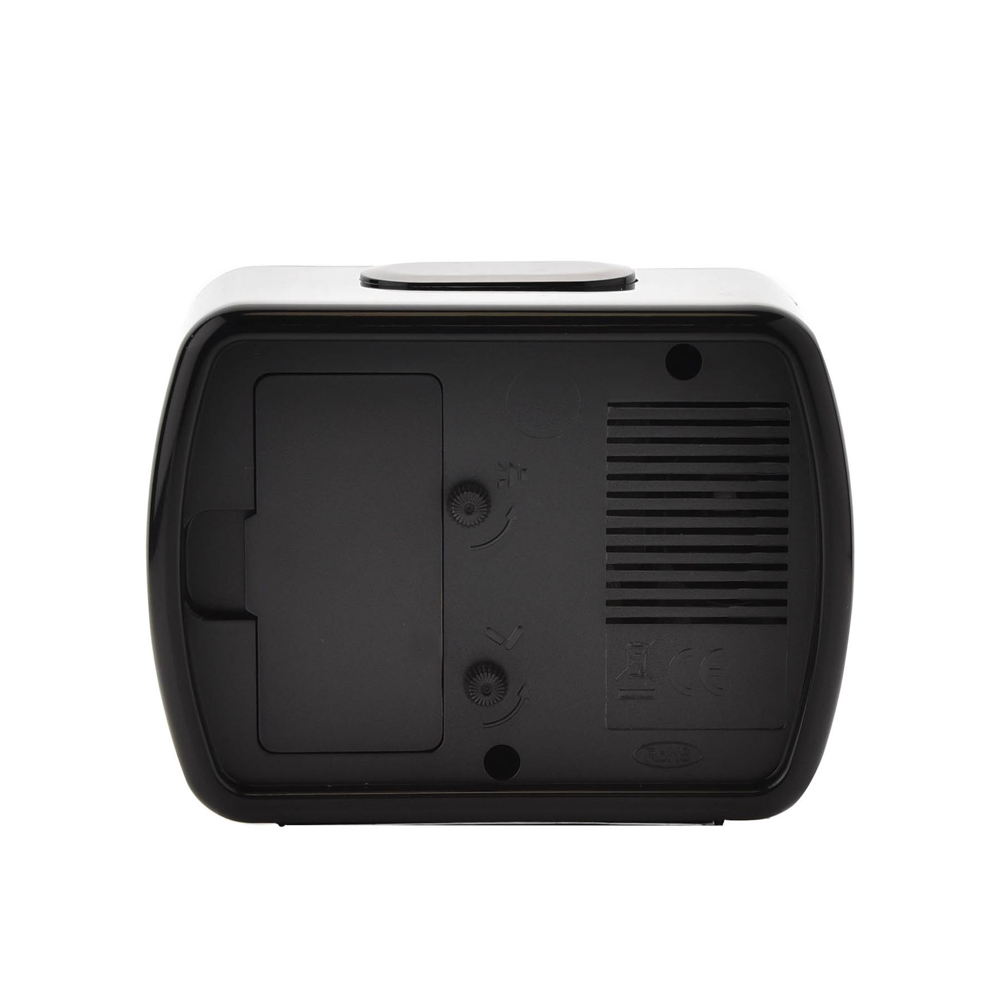 With its clear, easy-to-read and luminous Arabic dial, the clock is perfect for a bedside table. The clock face features complementary luminous straight hands and is furthered by a bell alarm and black surround.
