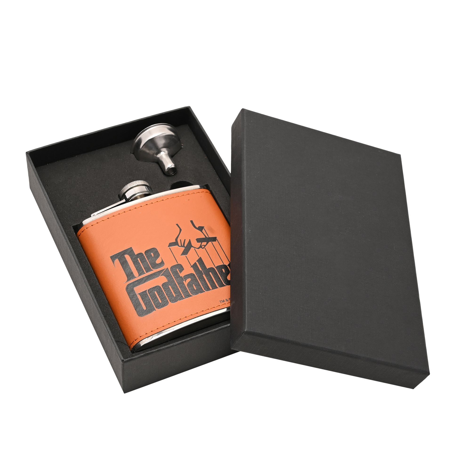 This premium set includes a flask, funnel, and accessories, all presented in a sophisticated black gift box. Perfect for fans of The Godfather, this portable flask makes a great gift that combines cool design with everyday practicality.