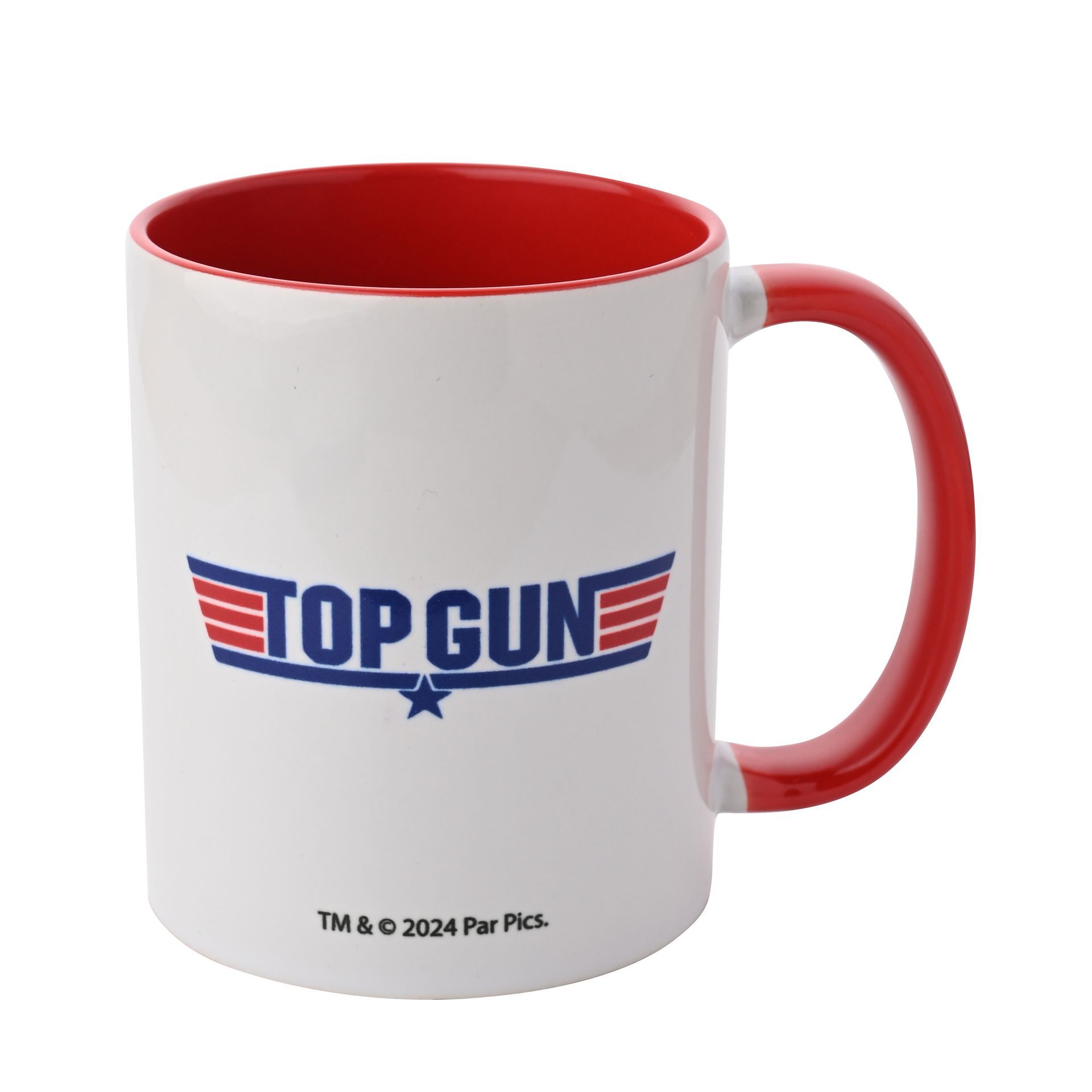 The Top Gun Red Inside Mug, 11oz, featuring the beloved phrase 'Top G-Dad' by PARAMOUNT. This stylish mug is a must-have for a Top Gun enthusiast, combining functionality with a touch of cinematic nostalgia. Crafted from durable ceramic, the mug boasts a white classic exterior that seamlessly complements the red handle and interior. Let this mug transport much loved grandads to the high-flying world of Top Gun. Packaged in a closed box.