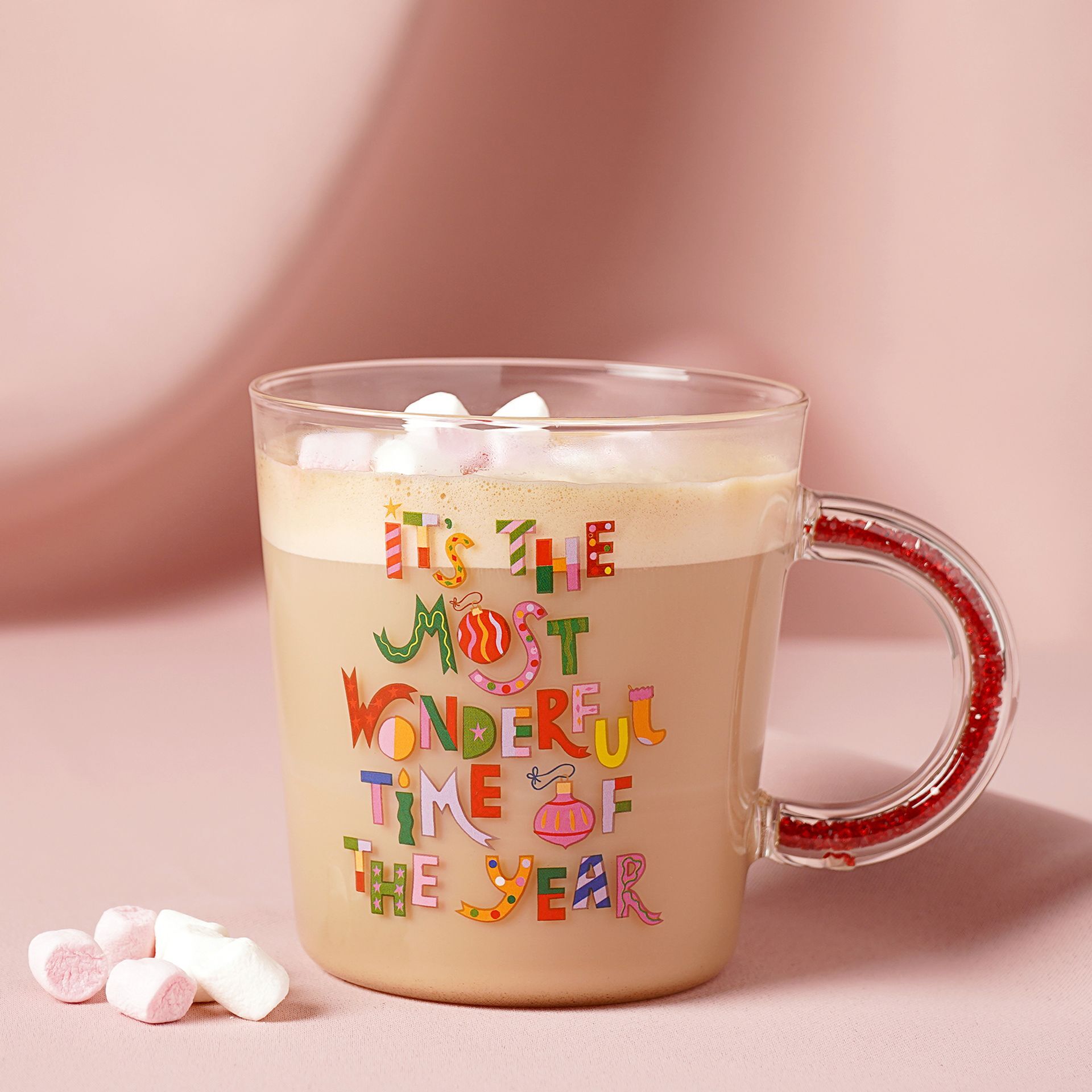 The Raspberry Blossom Glass Mug - It’s The Most Wonderful Time Of The Year is a festive way to enjoy cosy drinks throughout the season or to share as a thoughtful gift.