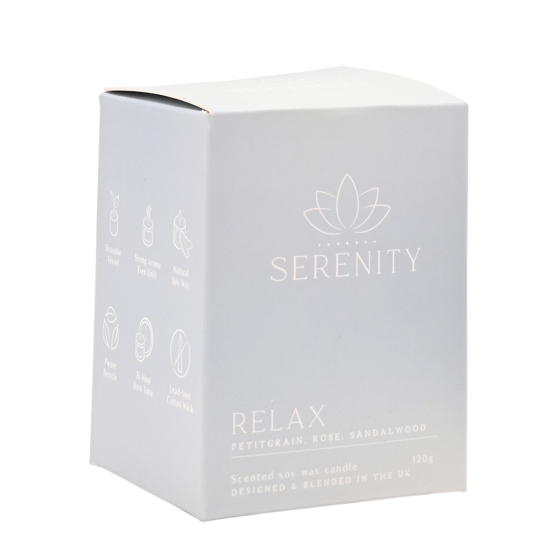 Serenity Relax Candle 120g Petitgrain, Rose & Sandalwood