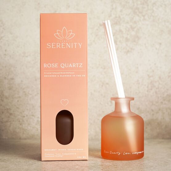 The Serenity Rose Quartz Crystal Infused 230ml Oil Diffuser is a thoughtful gift that creates a calming ambience. Infused with genuine rose quartz crystals, this reed diffuser releases a soothing fragrance to promote relaxation and tranquillity.