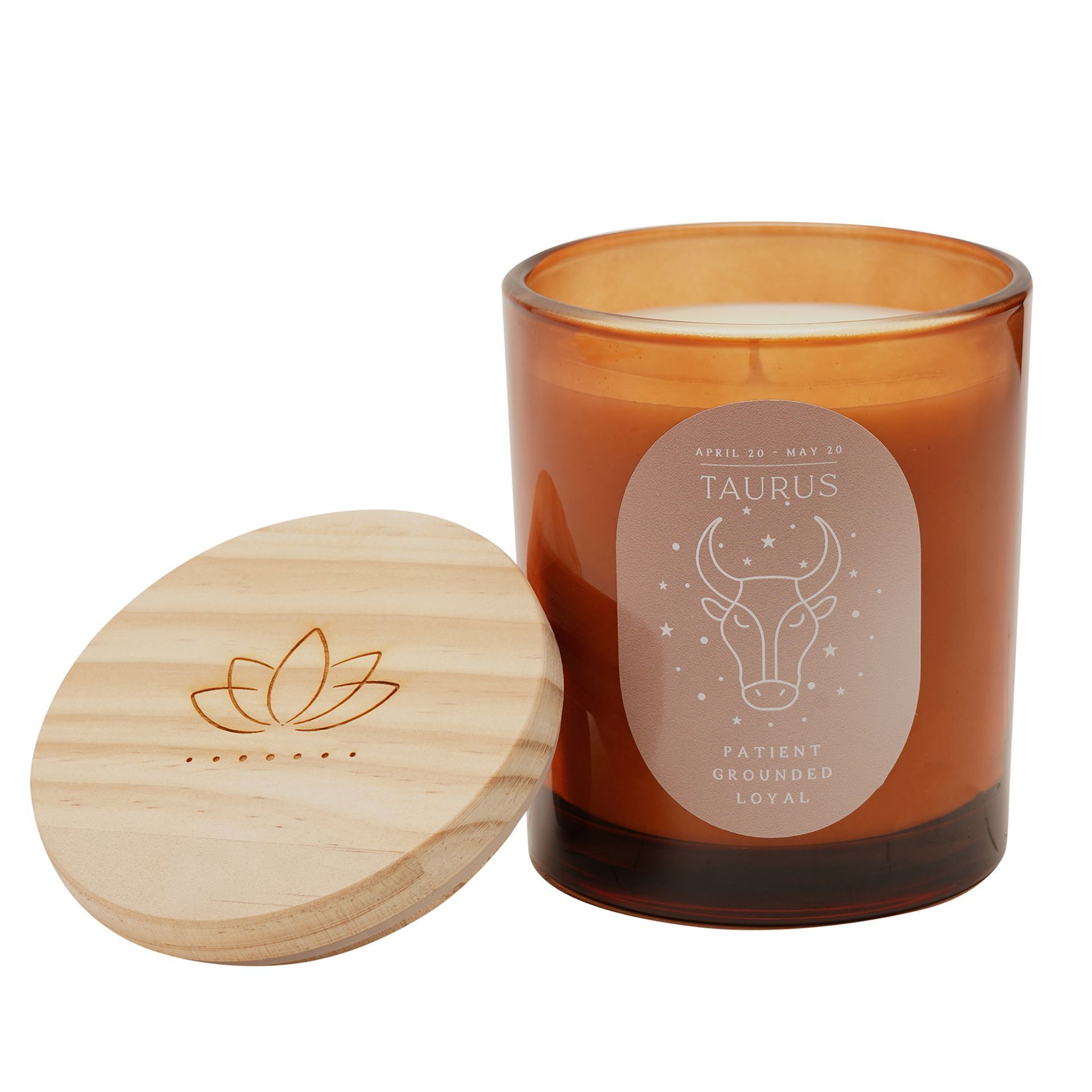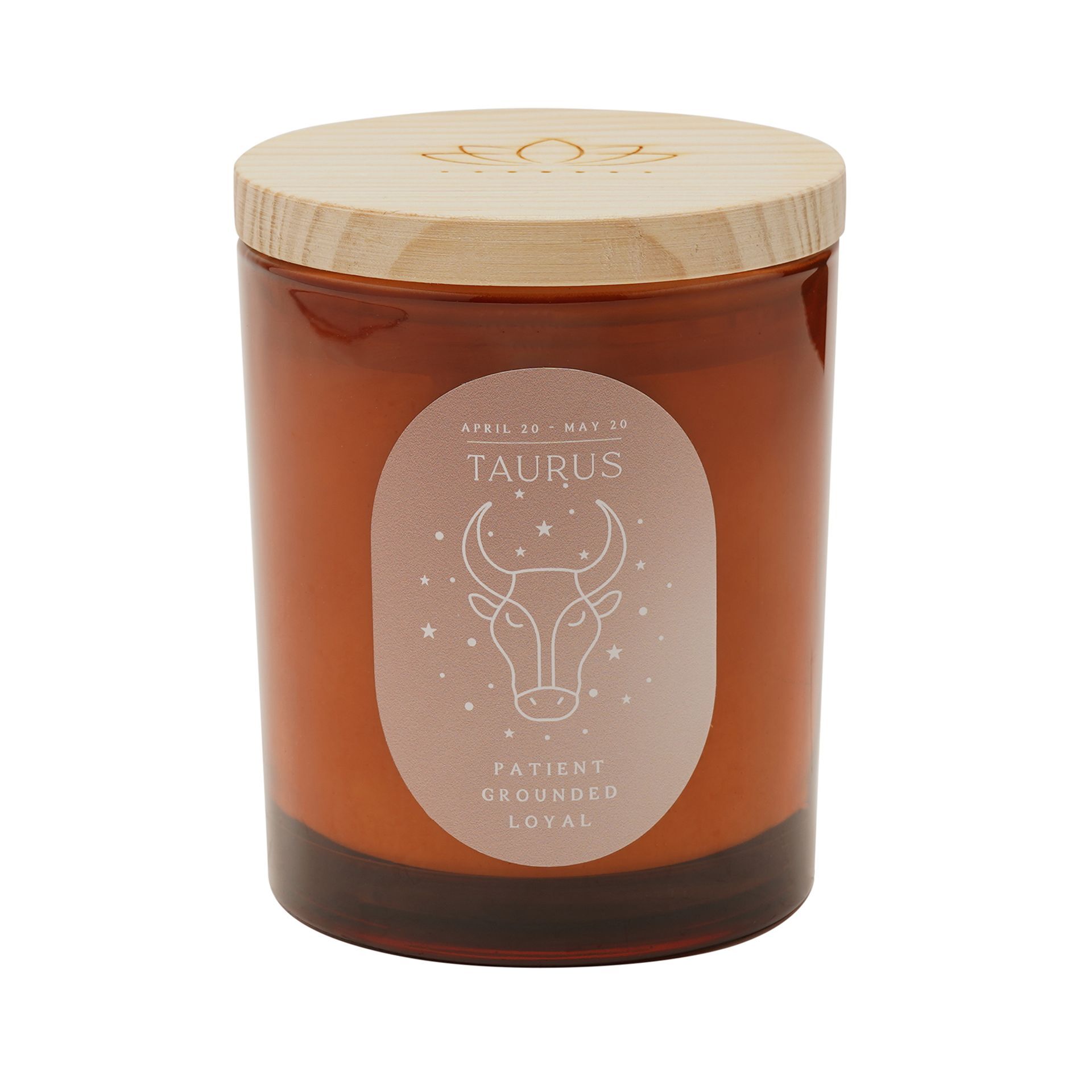 Nestled in an amber-coloured glass holder with wooden lid, this candle creates a warm and inviting ambience. The label bearing the zodiac sign adds a personalised touch to this charming gift.