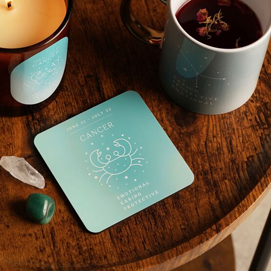 The Serenity Zodiac Coaster - Cancer elegantly protects surfaces while celebrating star signs.