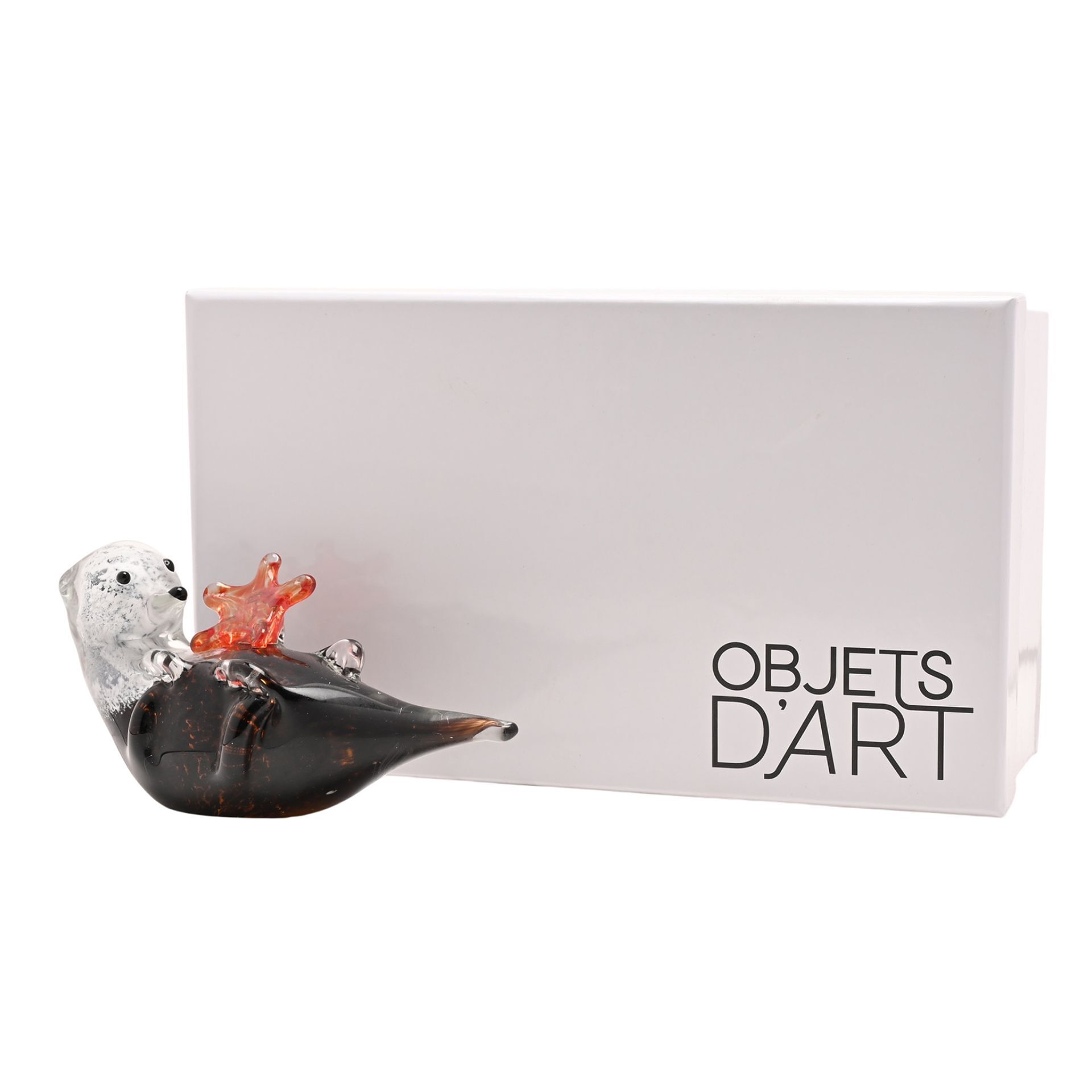 The Objets d'art Glass Figurine - Playful Otter captures the spirit of an otter at play. Hand-blown from glass with beautiful attention to detail, it’s a charming piece that adds personality to any bookshelf, mantel, or coffee table. Discover more unique figurines in our Objets d'art collection.