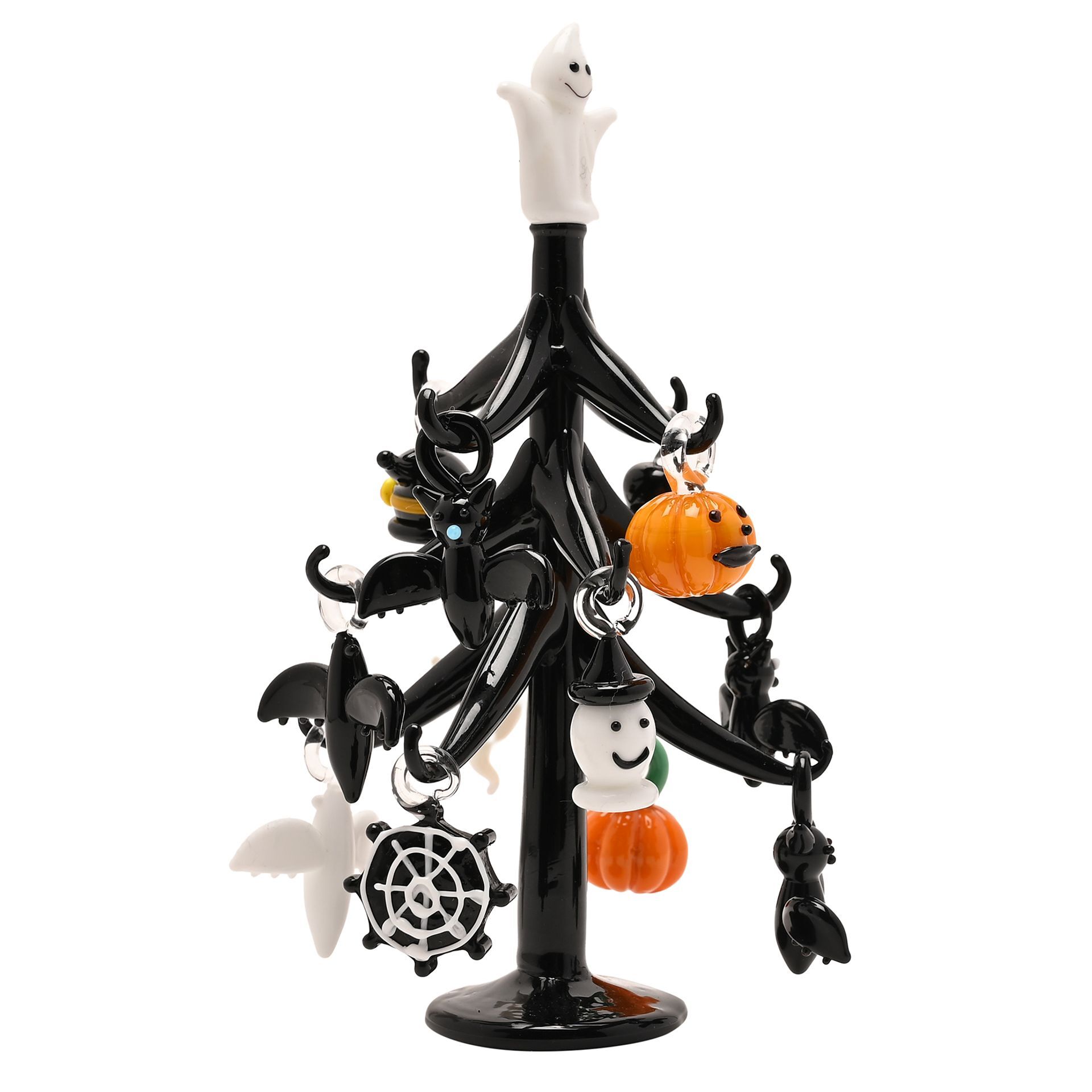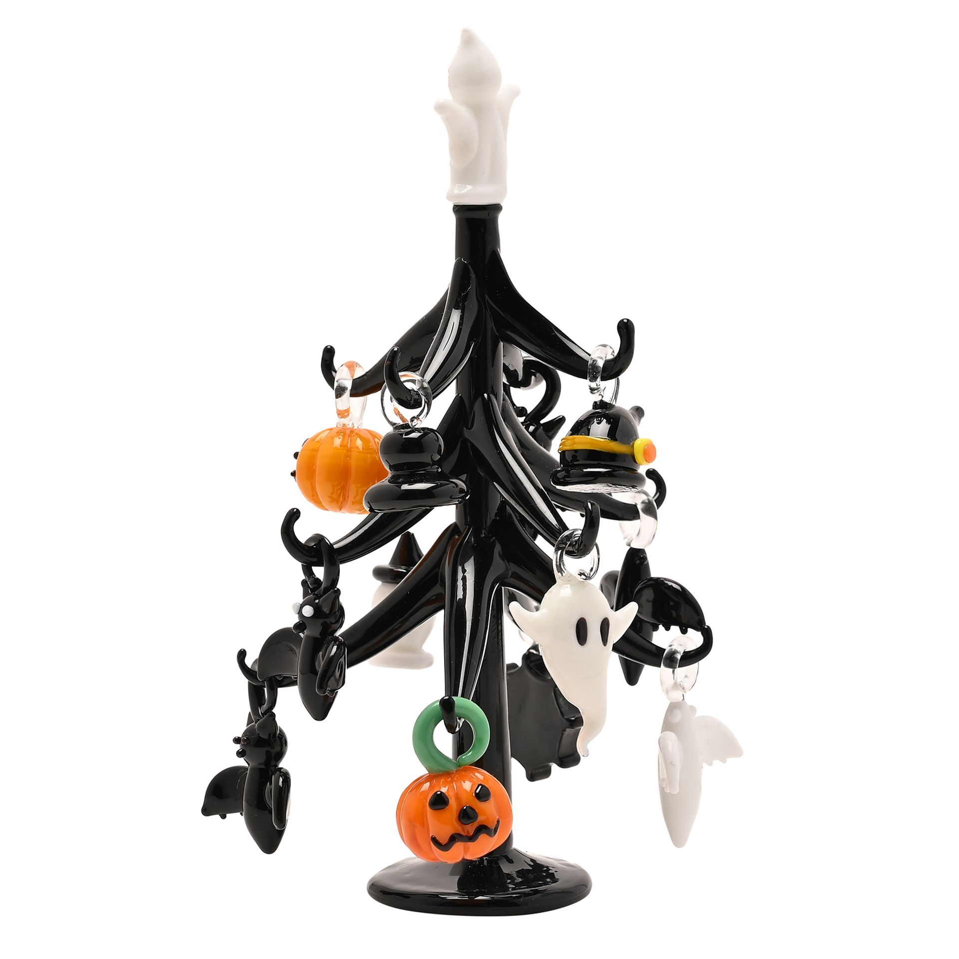 Objets D'art Miniature Glass Halloween Tree and Ornaments