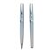 It features both a ballpoint and rollerball metal pen in soft blue and silver colours. The set comes complete with a matching presentation gift box which showcases a soft inner lining and silver brand lettering.