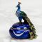 A beautiful, hand detailed die cast metal collectable peacock trinket box. From Treasured Trinkets - hand painted, collectable trinkets to be treasured for a lifetime. The trinket features an intricately hand painted peacock perched on top of a round blue box. The chest and tail feathers are encrusted with clear crystals. The hinged compartment opens to reveal a space perfect for small jewellery items or trinkets. Complete with the signature Treasured Trinkets satin lined lidded gift box.