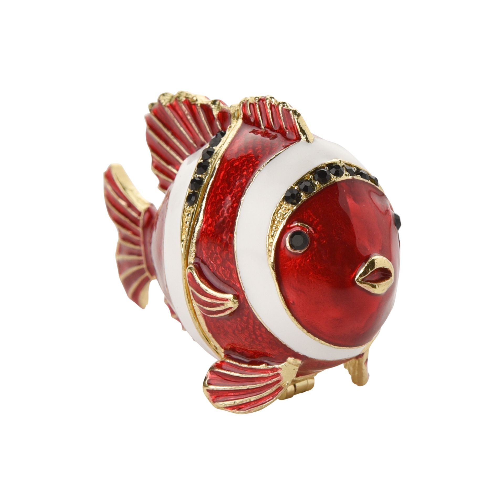Step into the enchanting world of the Treasured Trinkets – Tropical Fish by STRATTON, a whimsical and meticulously crafted trinket box that captures the endearing charm of such a creature.