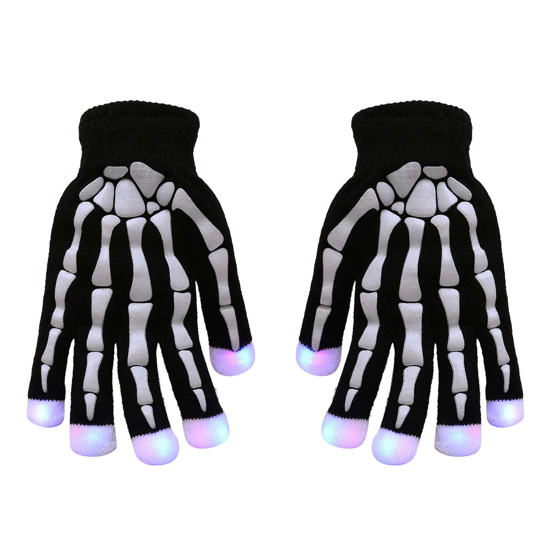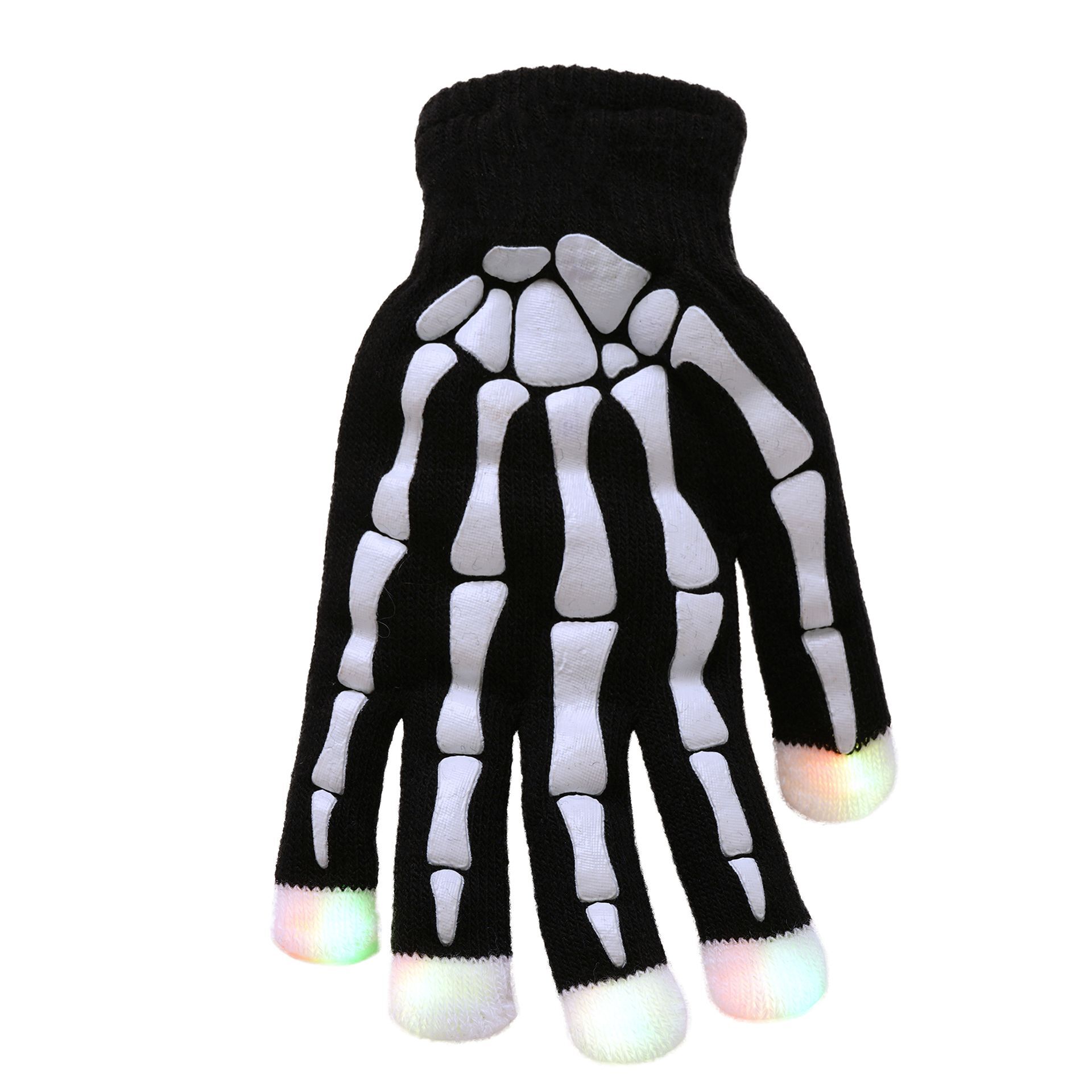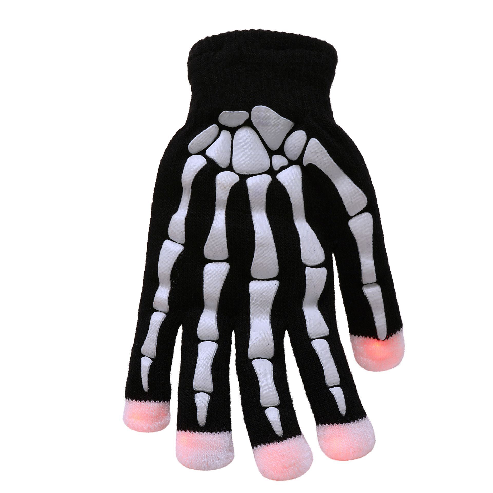 These gloves are no ordinary pair; they are adorned with a unique black skeleton print, and their fingertips illuminate with LED lights. Perfect for a Halloween party.
