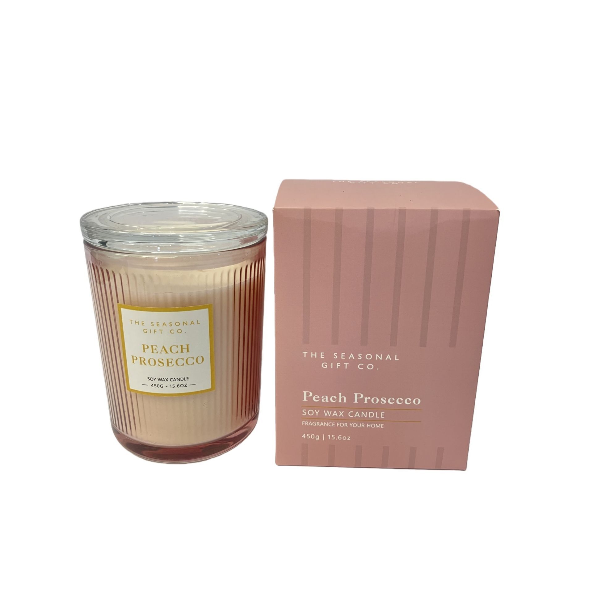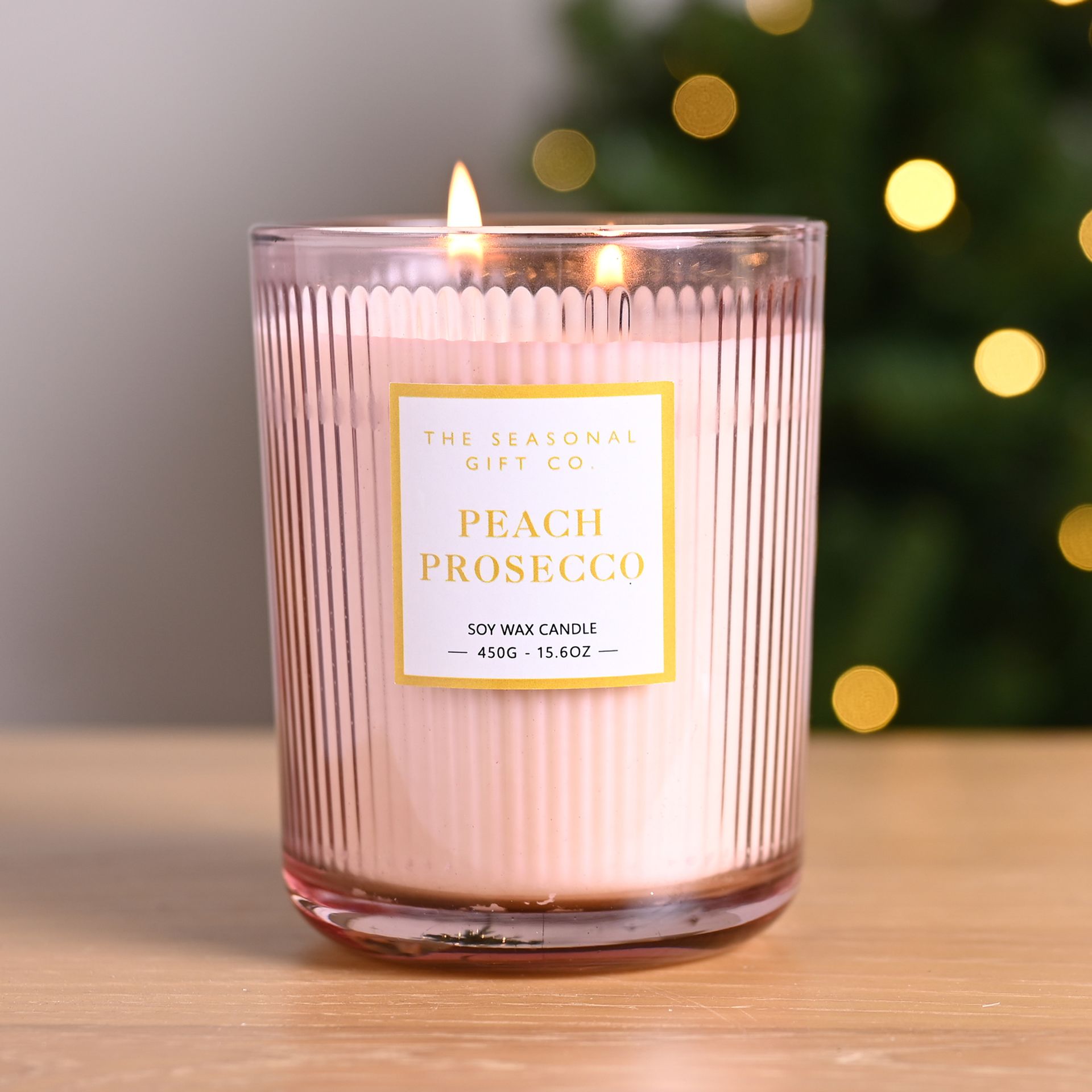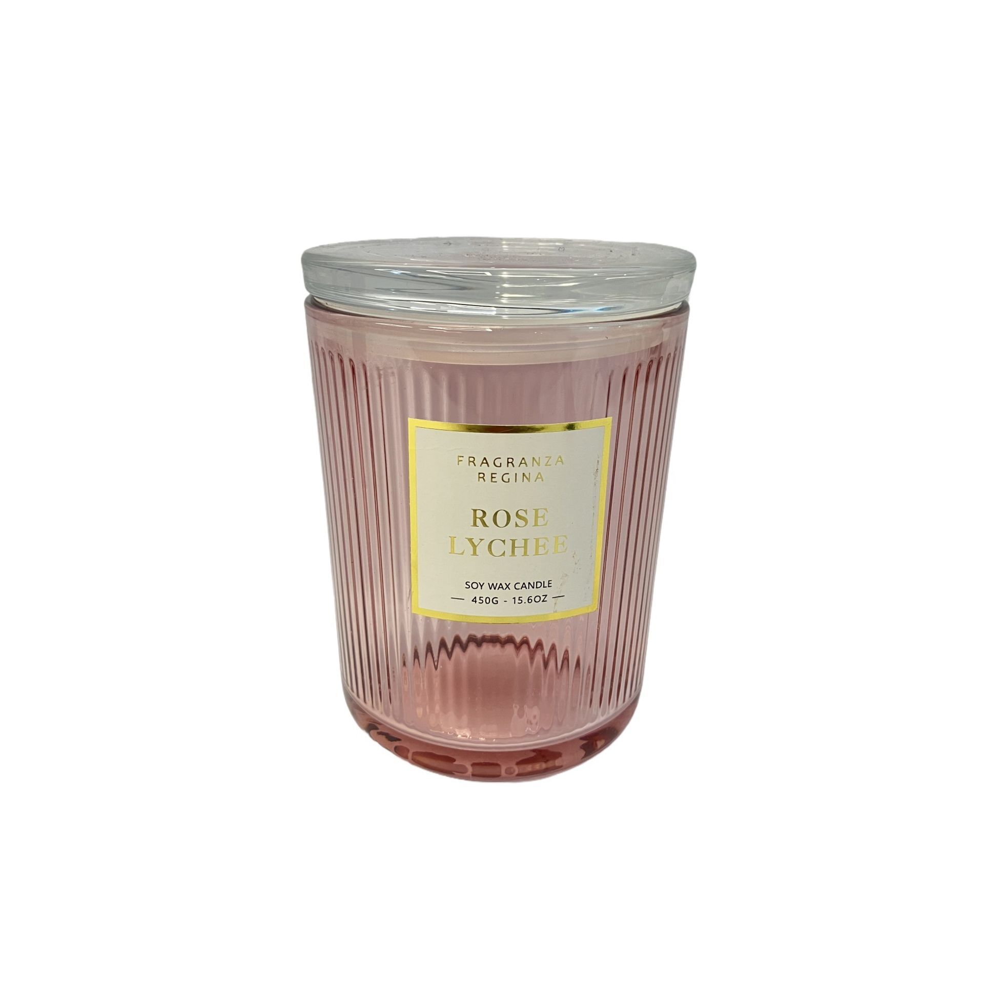 The Chateau Rosé 450g Scented Candle offers a contemporary accent for retail displays, blending refined design with on-trend colour. A glass jar features pink ribbed detailing, housing a soy wax candle with a rose lychee fragrance. Ideal for gifting within pastel luxury ranges. Complete the look with coordinating pieces from the Chateau Rosé collection.