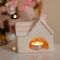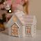 Shaped like a small house with a pink-and-white striped finish and a heart-shaped window, it holds a tealight to create a warm glow. Compact and easy to style, it works well across mantel, shelf or gifting displays.