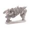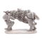 The grey resin ornament showcases a pair of bunnies carrying a Christmas tree. It is completed by a vintage glitter finish.