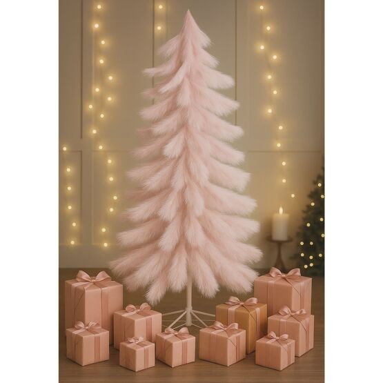 The Pink Christmas Pampas Tree 214cm is a striking festive centrepiece, blending playful colour with modern elegance. A fluffy, pale pink tree with a pampas texture and soft hue creating a whimsical yet refined statement.
