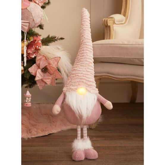 The Pink Fabric Gnome Standing Decoration with Long Plush Hat reimagines a festive favourite in pastel tones.