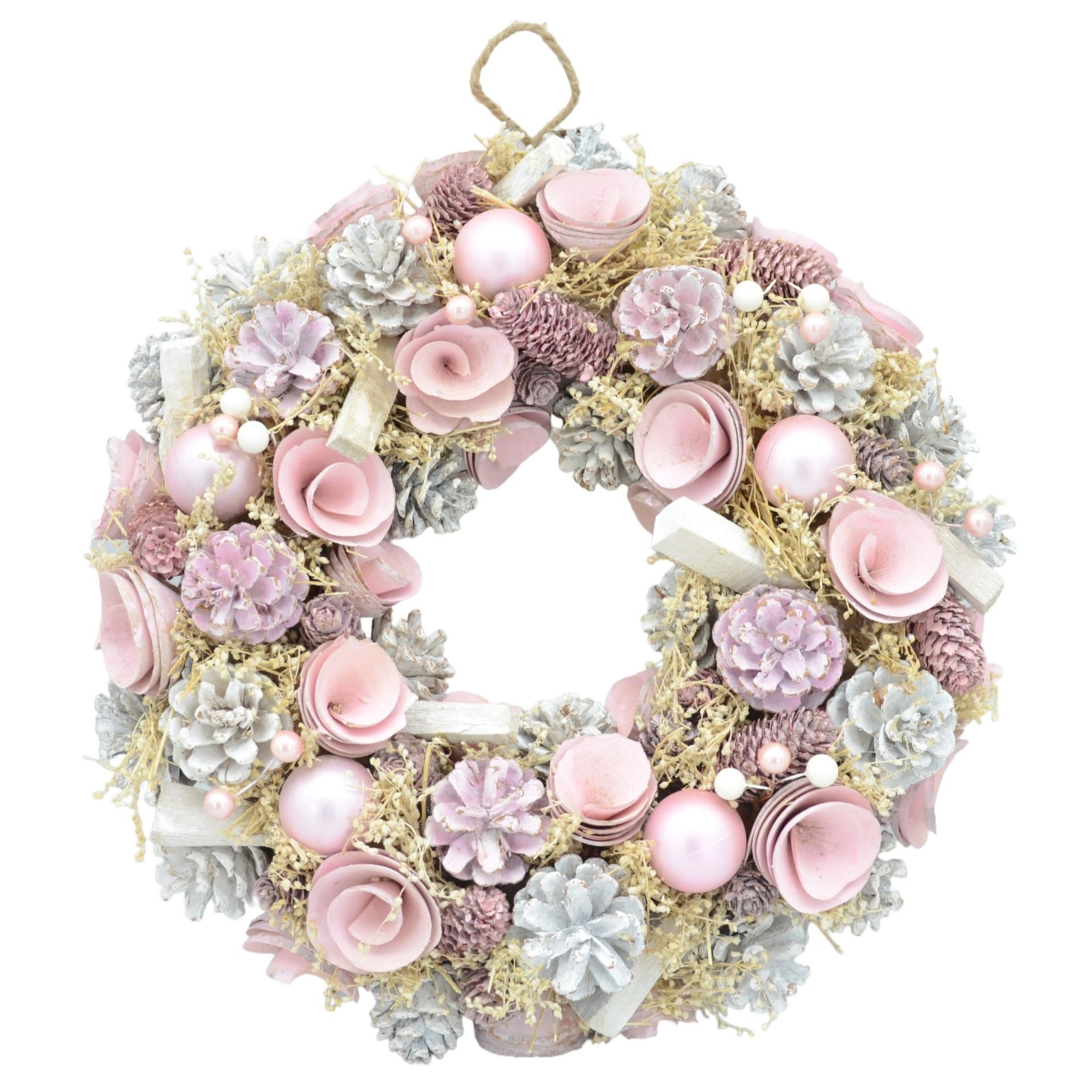 Pink Pinecone Wreath with Beads and Faux Flowers 38×38×9cm