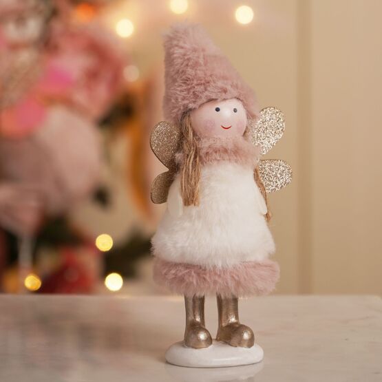 Made from soft plush fabric with a conical hat, delicate wings, and a fluffy white dress, it introduces gentle texture and light colour to Christmas displays. Compact and versatile, it’s a simple way to add warmth and balance across seasonal ranges or gifting selections.