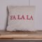 Shop White Furry Cushion with Fa La La Embroidery, Velvet Back and Pink Piping 40x40cm Wholesale Online UK