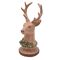 Offering rustic charm and timeless Christmas beauty in a replica carved wood effect, this majestic deer head features antlers, adorned with a holly leaf wreath, and resting on a log-like base.