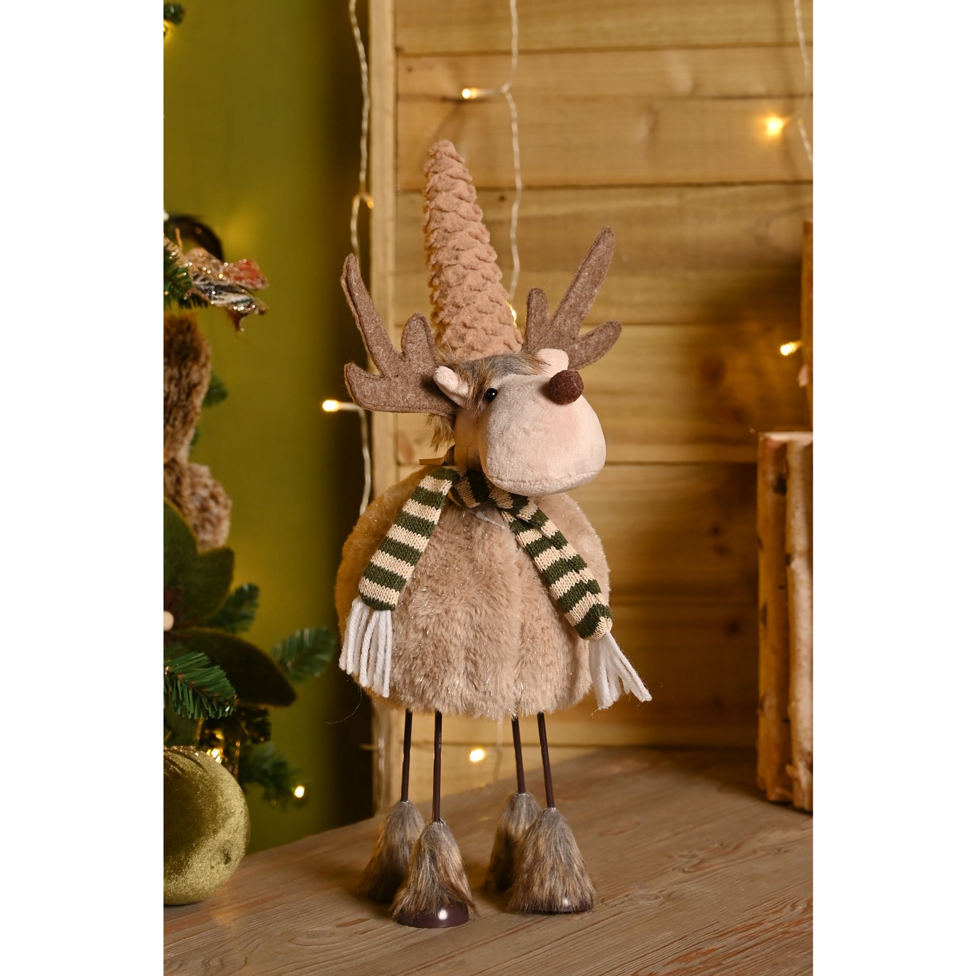 The Fabric Ornamental Natural Look Reindeer in Plush Style with Wire Legs 44cm introduces a playful woodland accent to festive interiors.