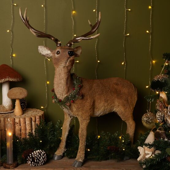 The Large Brown Freestanding Faux Fur Deer 83 x 40 x 92cm introduces a woodland-inspired accent for seasonal interiors.