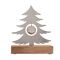 The metal decoration showcases a silver, metallic effect Christmas tree silhouette, complete with inner cut out tree, in which sits a silver hanging bauble. It sits upon a natural wood stand and is designed for prominent display on the mantlepiece or dining room table.