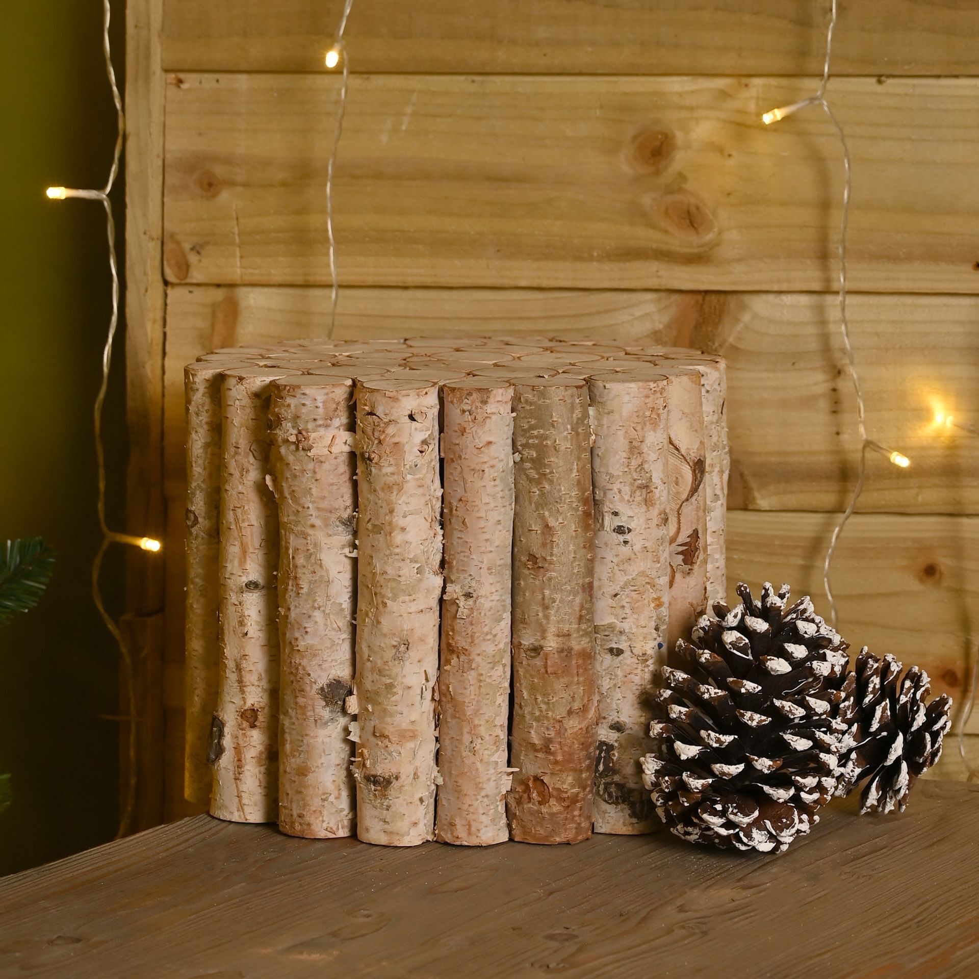 The Medium Natural Wooden Tree Branch Plinth Decoration H20 x 25cm introduces a rustic accent to seasonal styling.