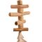 Key features include geometric shapes expertly cut from wood, creating a delicate silhouette of Christmas trees. The natural wood tones and simple design evoke rustic charm and tranquillity.